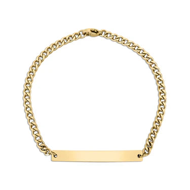 Gracias a su placa estilizada, esta esclava permite grabados definidos y legibles sin perder su estética minimalista. Es una pieza que transmite presencia sin ser excesiva, perfecta para el uso diario y para quienes buscan una joya personalizada con carácter discreto y atemporal.